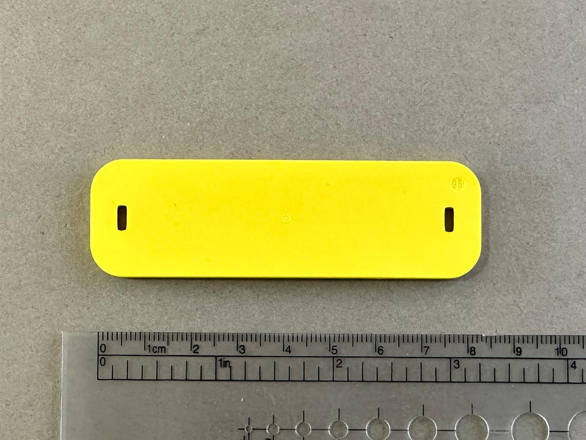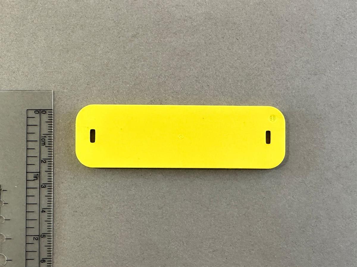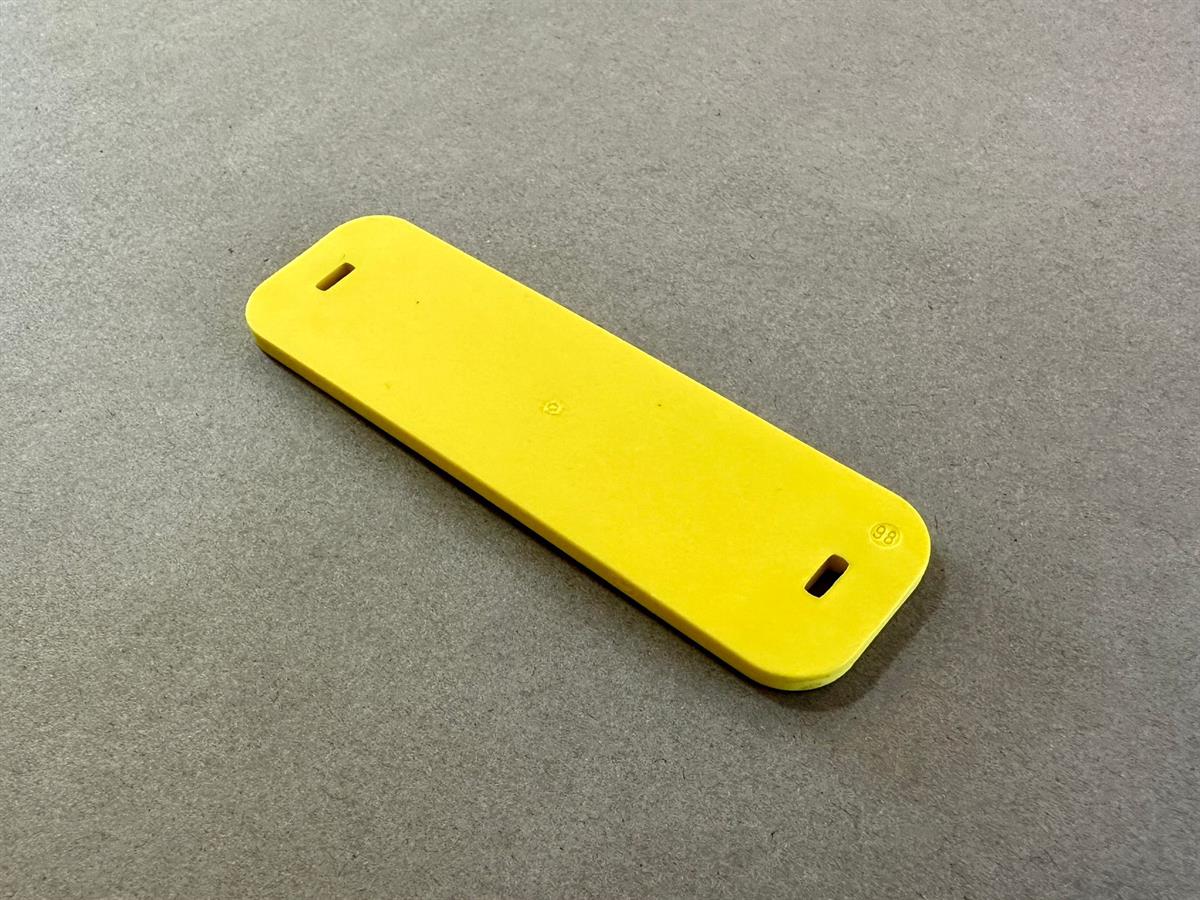 MECHANICAL: Tag Form Factor: Flexible hard tag Tag Materials: TPU Attachment Method (Versions with Slots): Cable tie vertical to surface, glue, rivet, screw Attachment Method (Washer Version): Aluminum Rivet 4.8 mm (0.19 in) Dimensions (Versions with Slots): 83 x 25 x 3 mm (3.3 x 1 x 0.12 in) Dimensions (Washer Version): 65 x 0.5 x 0.08 mm (2.5 x 0.5 x 0.08 in) Weight (Versions with Slots): 6 g Weight (Washer Version): 9 g